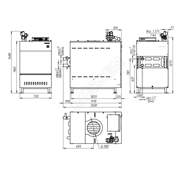 Котел RSA 200 имеет открытую топку и оборудован атмосферной горелкой. Теплообменник производится на Заводе Rossen, выполнен из оребренных труб с увеличенной поверхностью теплоотдачи.