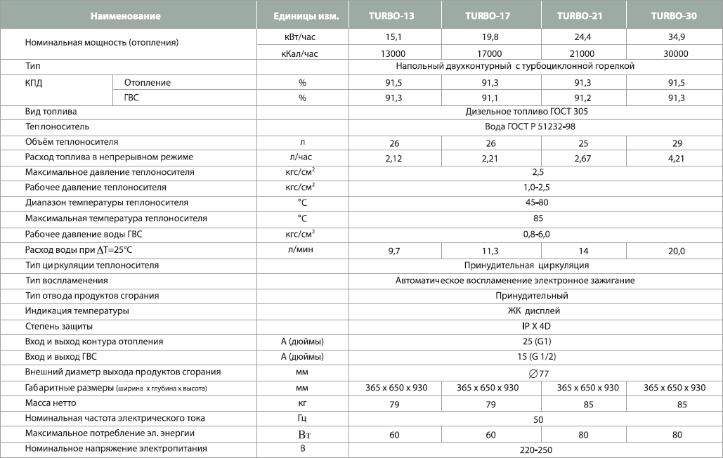 Технические характеристики дизельного котла Kiturami Turbo 17R