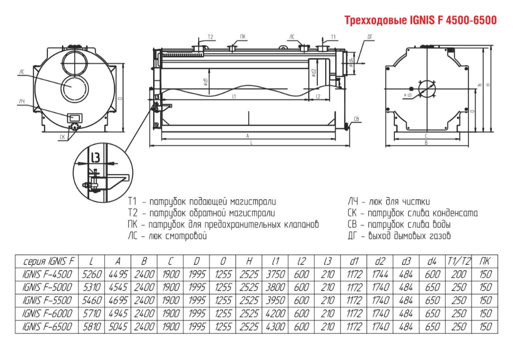 Технические характеристики водогрейного трёхходового котла ARCUS IGNIS F-6000