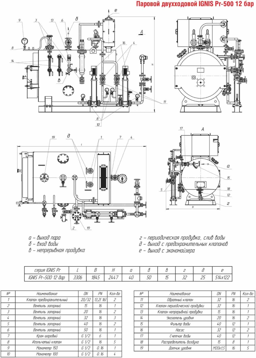 Технические характеристики парового двухходового котла ARCUS IGNIS Pr-500
