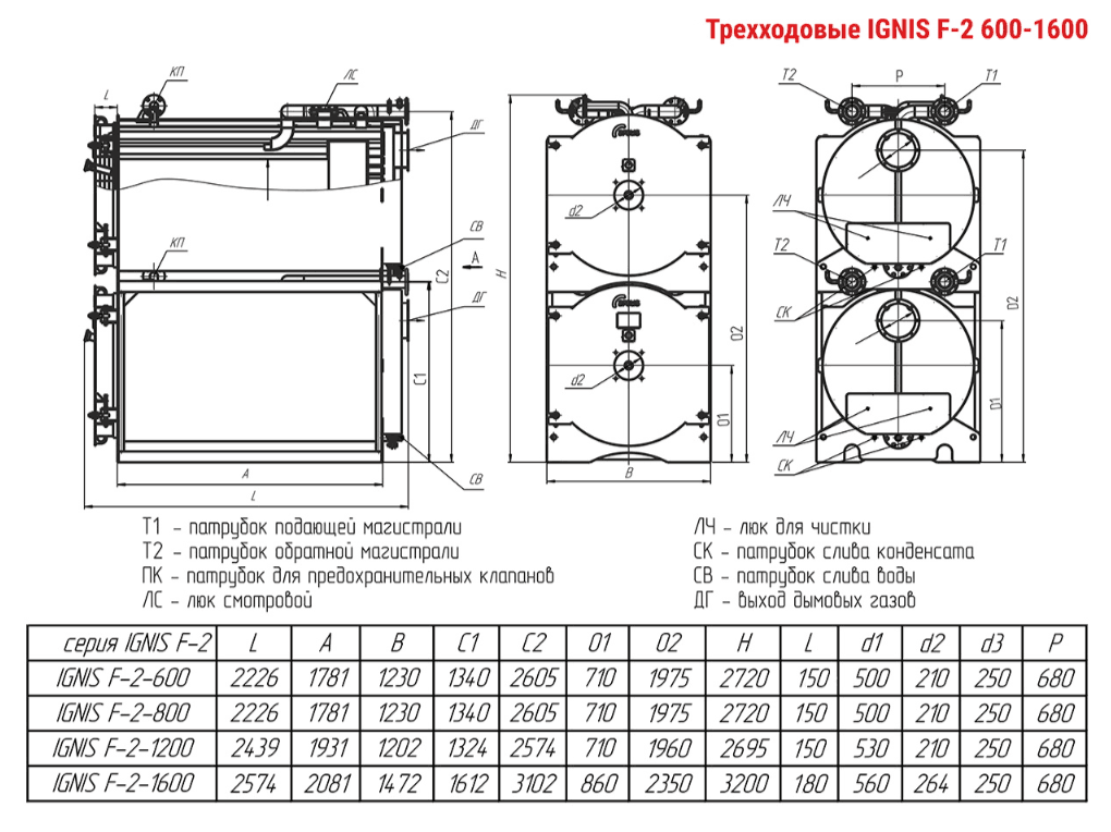 Технические характеристики модульного водогрейного трёхходового котла ARCUS IGNIS F-2-1600
