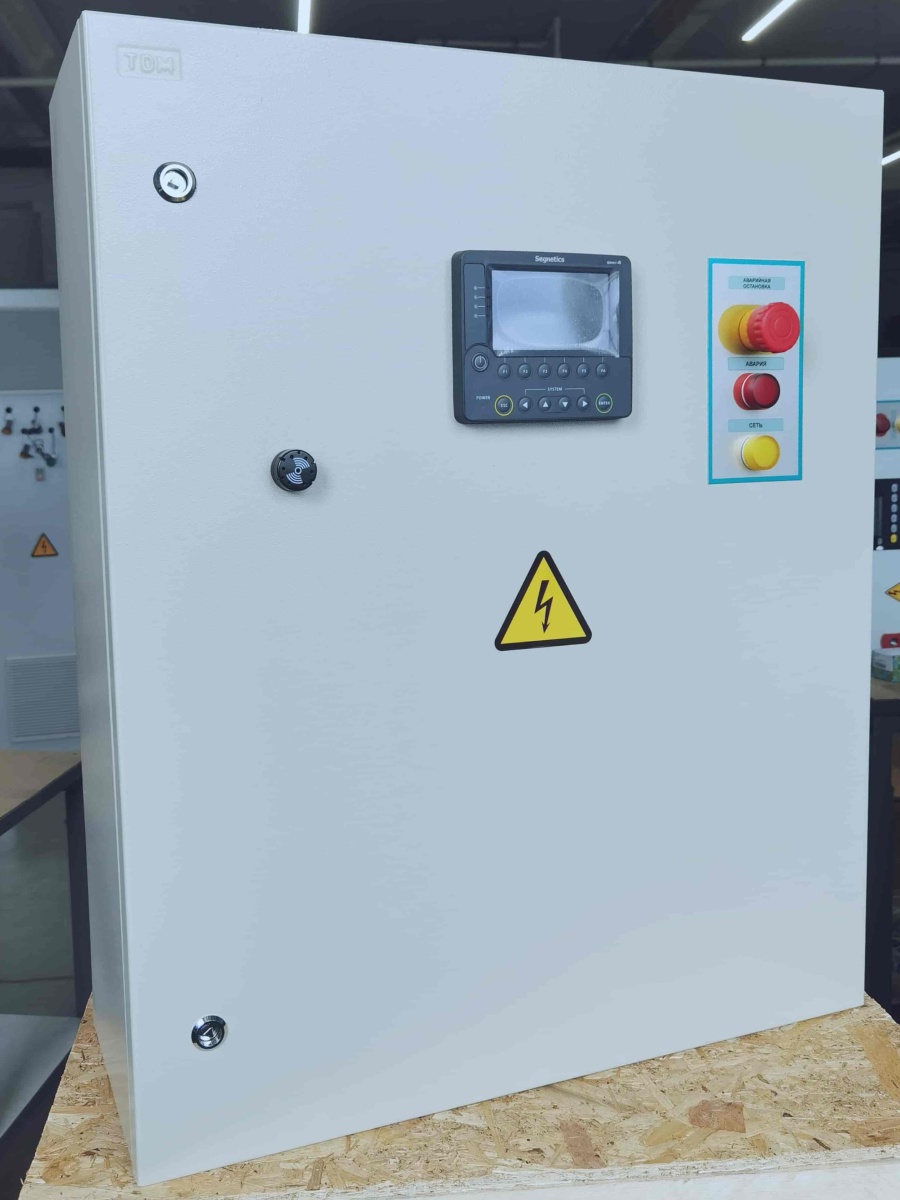 Система автоматики работает на контроллере Segnetics SMH4. Контроллер принимает сигналы с датчиков и выдает управляющие сигналы, соответствующие режиму и алгоритмам работы, на исполнительные устройства и реле для управления технологическим оборудованием. Шкаф имеет степень защиты IP65.