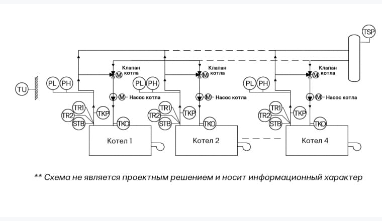 4 котла, погодозависимое регулирование |