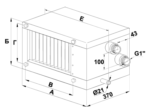 • Диаметры подводящих и отводящих патрубков водяного воздухоохладителя G1*.