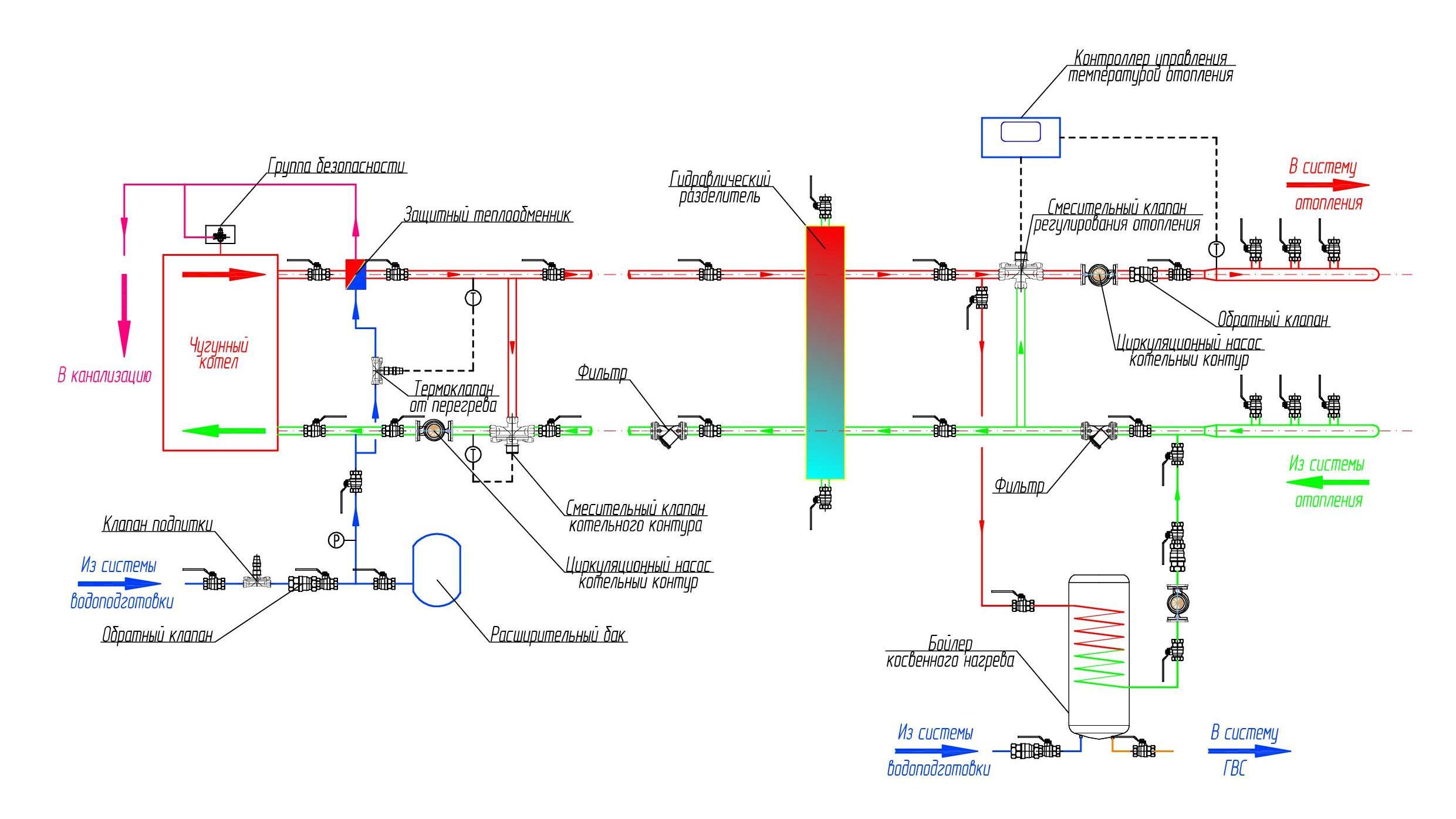 Схема обвязки и подключения чугунных котлов - газовых и твердотопливных